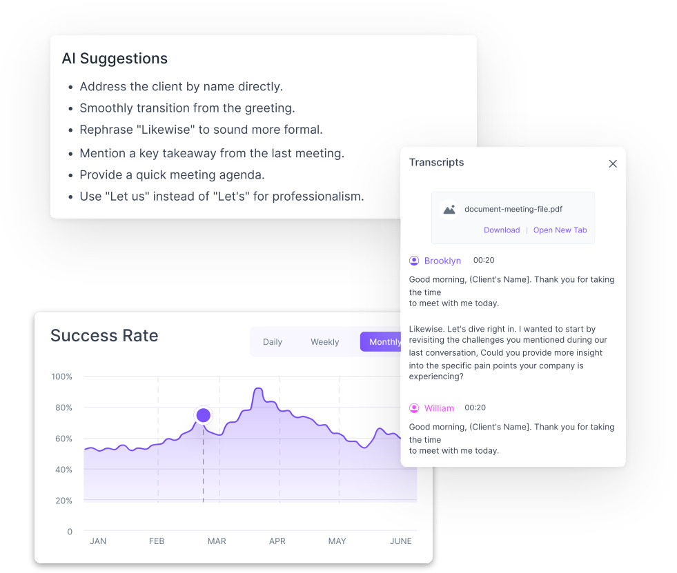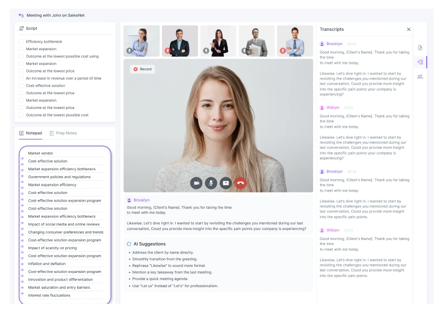 It integrates seamlessly with your existing video conferencing tools for a smooth workflow. It ensures effective objection handling and confident deal closures.