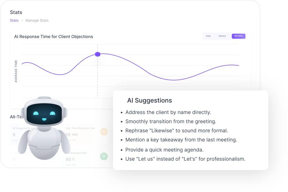 Instantly suggests pitches and rebuttals to close deals faster.